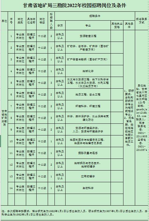 附件1: 甘肃省地矿局三勘院2022年校园招聘岗位及条件